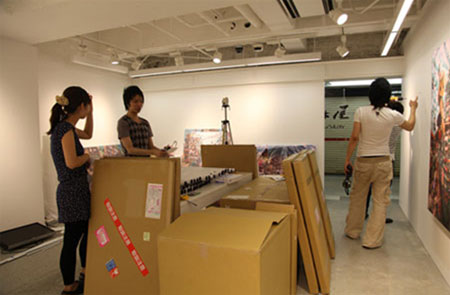 メインの展示となる十数枚の巨大なジークレー版画は夕方、会場に納品されました。