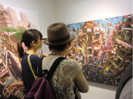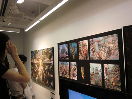 ギャラリー廊下には、横幅5m以上にもなる新作『Electric Lolita -超伝導のマリア-』を展示しました。この作品により、通りかかる多くの人が足を止めてくれました。